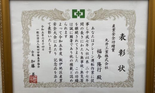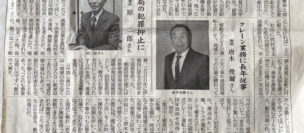 このように、公共的業務に関わりながら飯田・下伊那の暮らしを豊かにできるクレーン業の素晴らしさを今後も発信していきます。