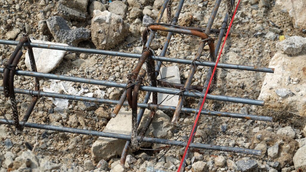地盤調査とは、建物を支える地面(地盤)が弱くないか調査します。調査場所は、建物の四隅と建物の中心部分を行います。