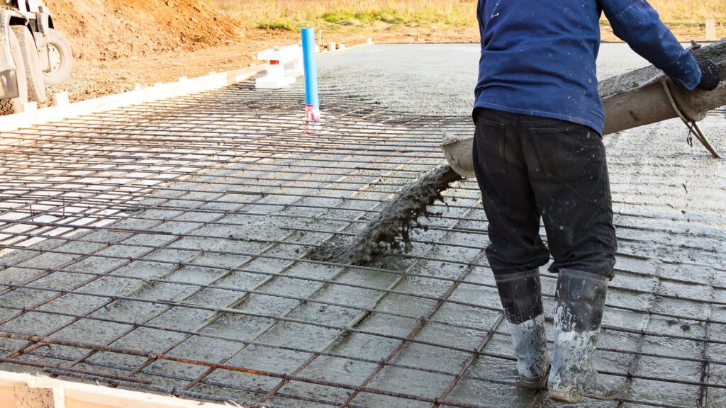 上記の配筋検査が通過したら、コンクリートを地盤面全体に流し込んでいきます。この際、シロアリの被害から守る防蟻処理も施されます。